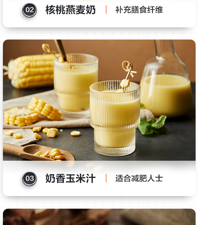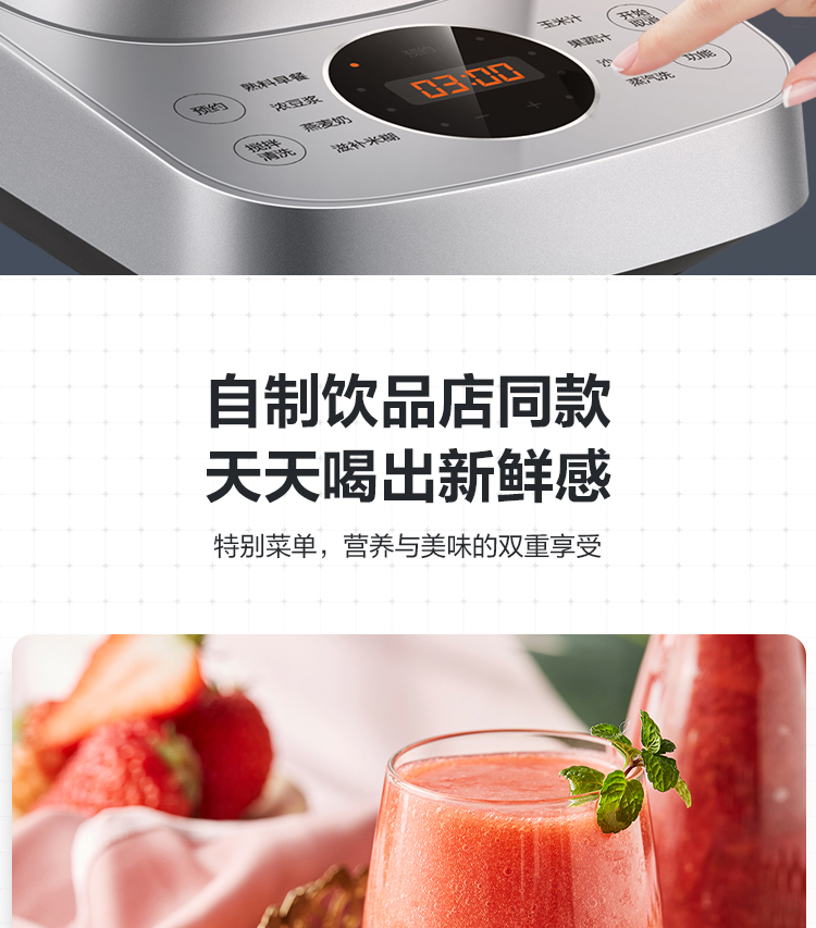 功能:熟料早餐、濃豆?jié){、燕麥奶、滋補(bǔ)米糊、玉米汁、果蔬汁、沙冰、蒸汽洗、預(yù)約、攪拌清洗