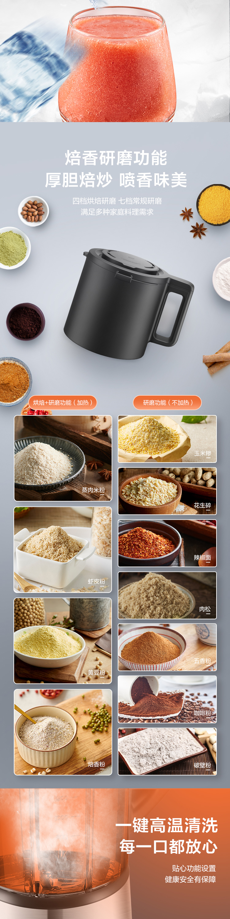 功能:熟料早餐、滋補(bǔ)米糊、燕麥奶、五谷漿、快豆?jié){、玉米汁、綠豆湯、養(yǎng)生濃湯、果蔬汁、奶昔、沙冰、高溫清洗、預(yù)約、攪拌