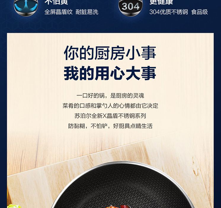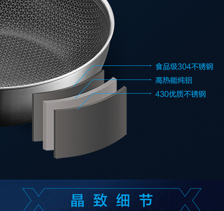 X晶盾不銹鋼煎炒鍋