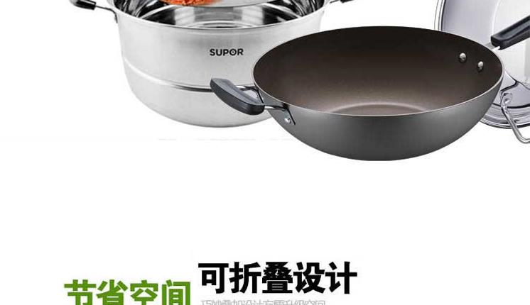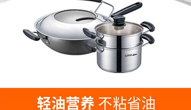 材質(zhì):炒鍋:鋁合金;蒸鍋:304不銹鋼