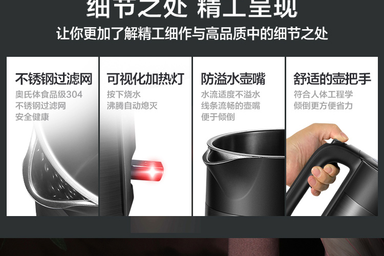 電熱水壺材質(zhì): 304不銹鋼