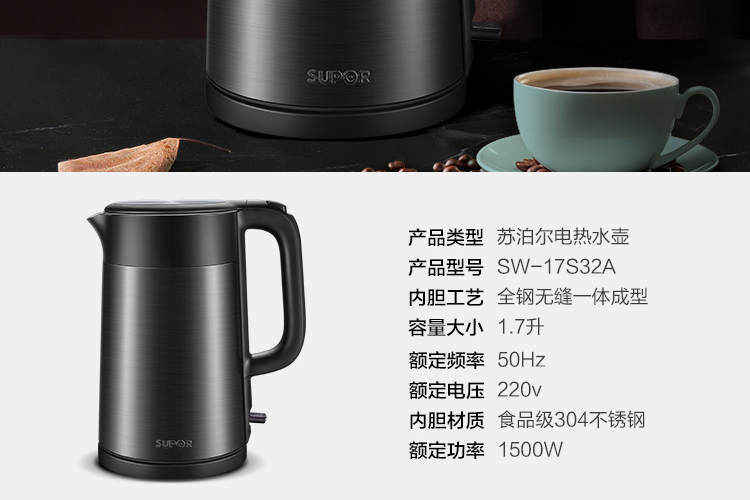 電熱水壺容積: 1.7L