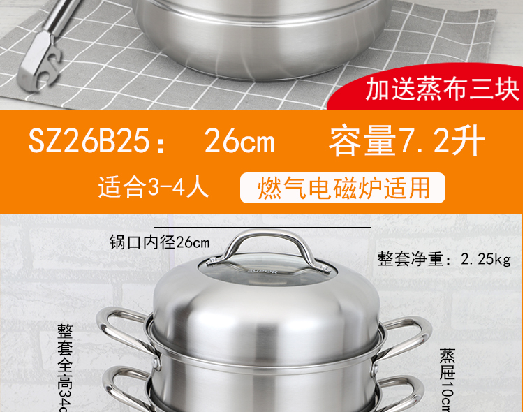 易存儲(chǔ)不銹鋼三層復(fù)底蒸鍋
