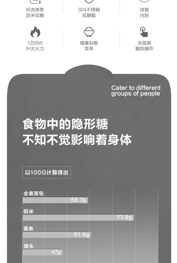 特點(diǎn):球釜、IH、低糖飯