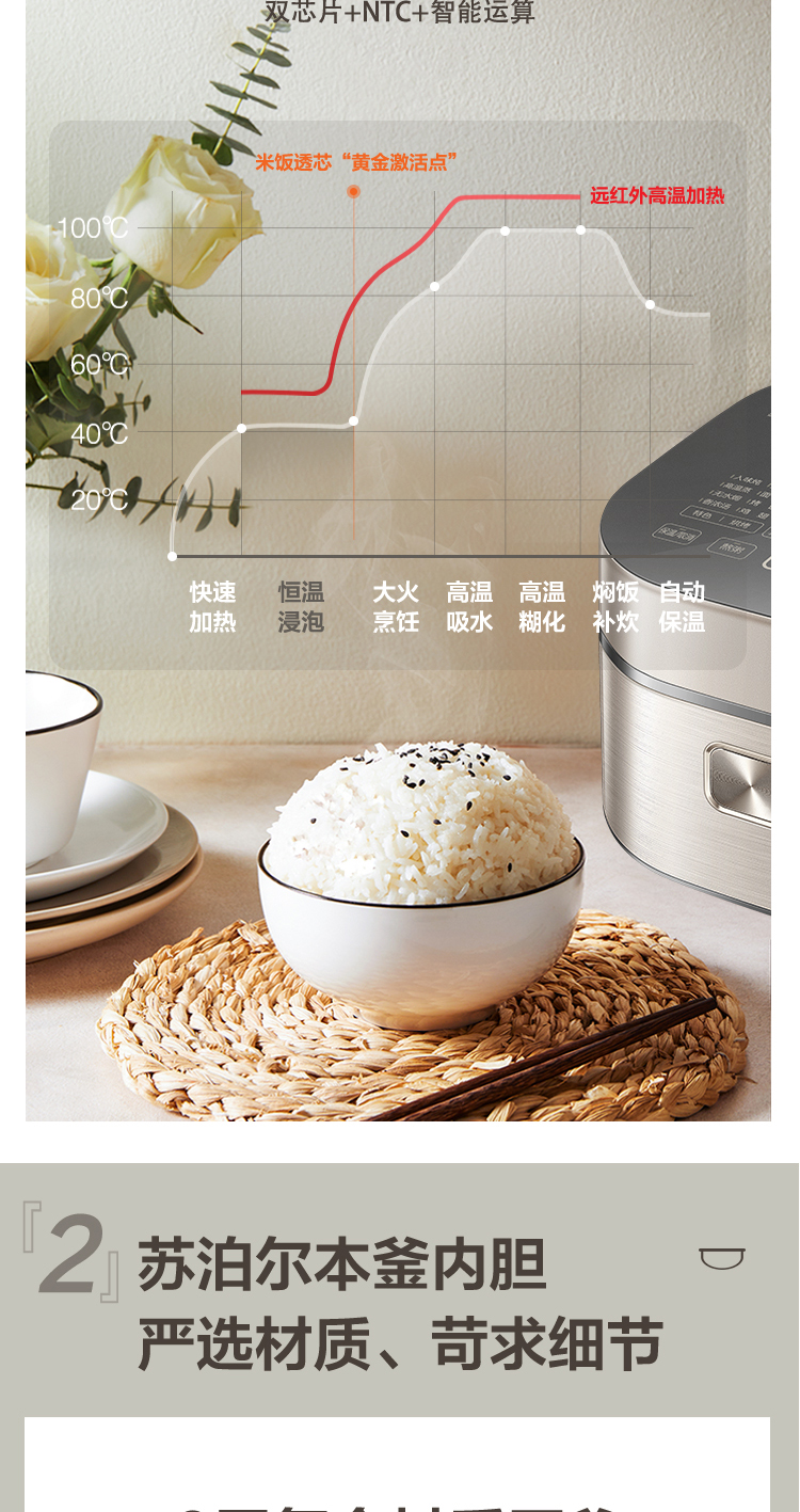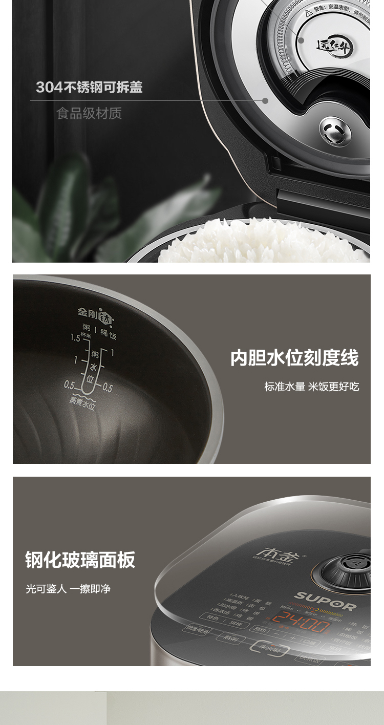 特點(diǎn):遠(yuǎn)紅外加熱、IH、本釜、快煮飯