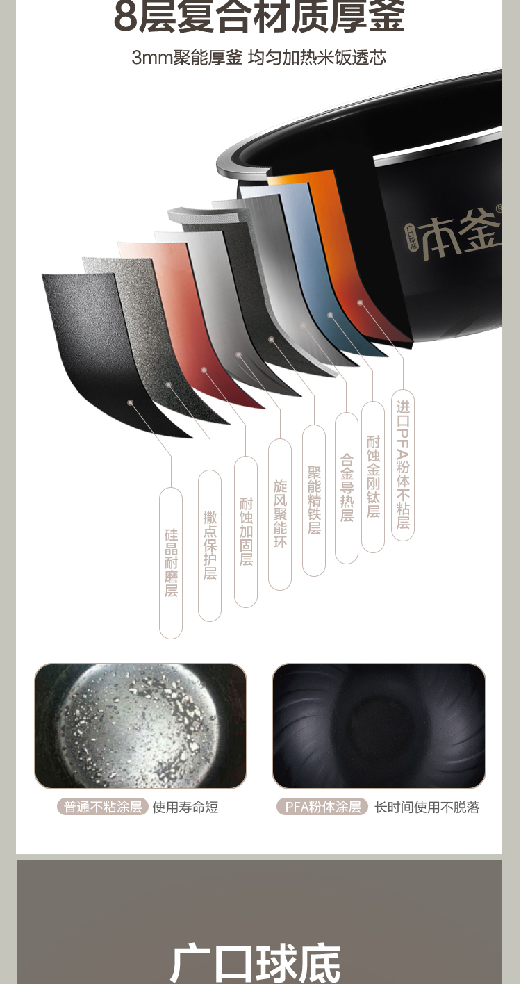 內(nèi)膽:3.0mm廣口球底八層聚能本釜內(nèi)膽