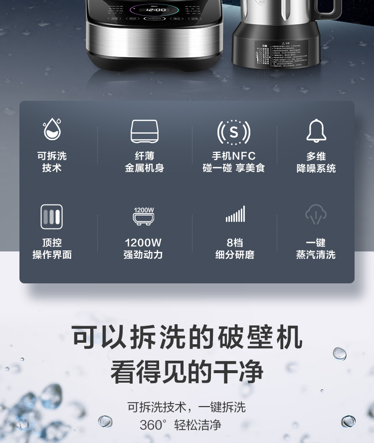 功能:熟料早餐、香濃豆?jié){、滋補米糊、玉米汁、養(yǎng)生濃湯、綠豆沙、果汁/奶昔、再加熱、預(yù)約,蒸汽清洗